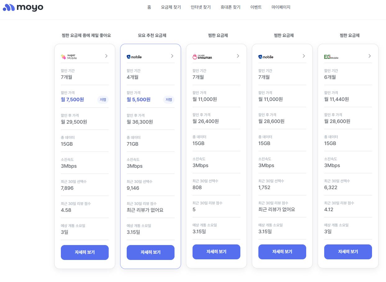 이 요금제는 모요 에서만 선택이 가능한듯 하다.